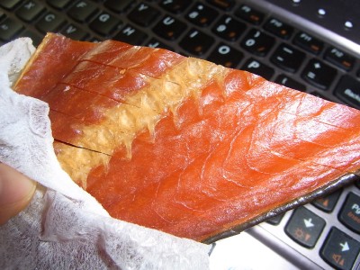 Kさんからも、りっぱな燻製鮭をどーんといただきました。