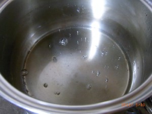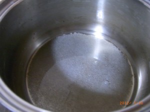 白砂糖と水を小なべにいれて、弱めの中火で煮ます。