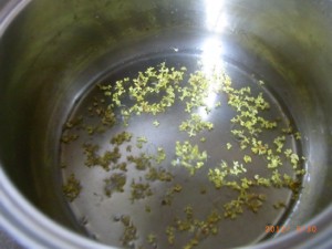 桂花シロップを作った直後は普通だな・・・と思ったのですが、一晩置いたら桂花の華やかな香りがみんなシロップに移っておいしくなりました。参加メンバーから紅茶に入れるのもいいかも、というアイデアも出ました。おいしそう。