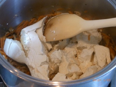 炒り豆腐にするなら、老豆腐と呼ばれる中国の木綿豆腐をオススメします。日本の木綿豆腐よりも水分少なめで、炒めやすいですよ。