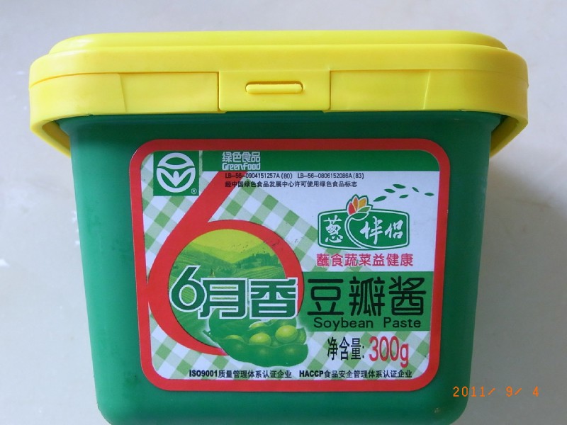 今回使った豆瓣酱はこちら。葱伴侶というメーカーの豆瓣酱です。ウォルマートの調味料コーナーにありました。5.7元。北京でもほかのスーパーでも見たことがありますので、手に入れやすいお味噌だと思います。