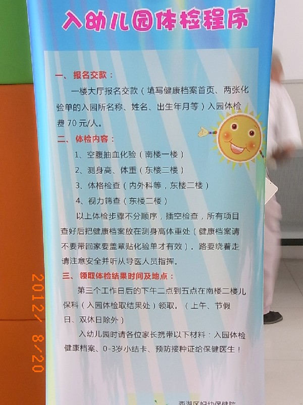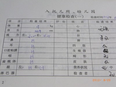 (健康小结卡を持っていない場合は、妇幼保健院儿保科で手続きして身体検査に合格した旨を記載してもらうこと)