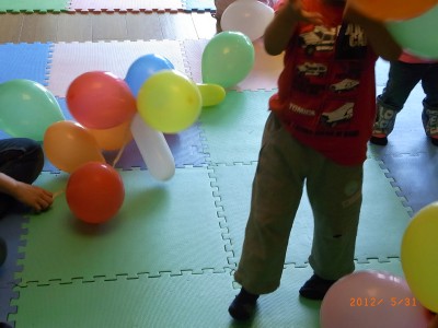 5月31日は風船の部屋でした。遊び終わった後は参加者の皆さんで風船をリボンで結び、