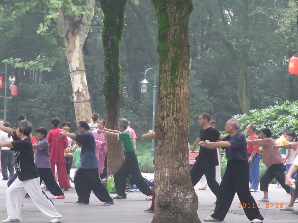 おなじみ太極拳。外人さん(って私も外人か)も混ざって一緒にやってる!